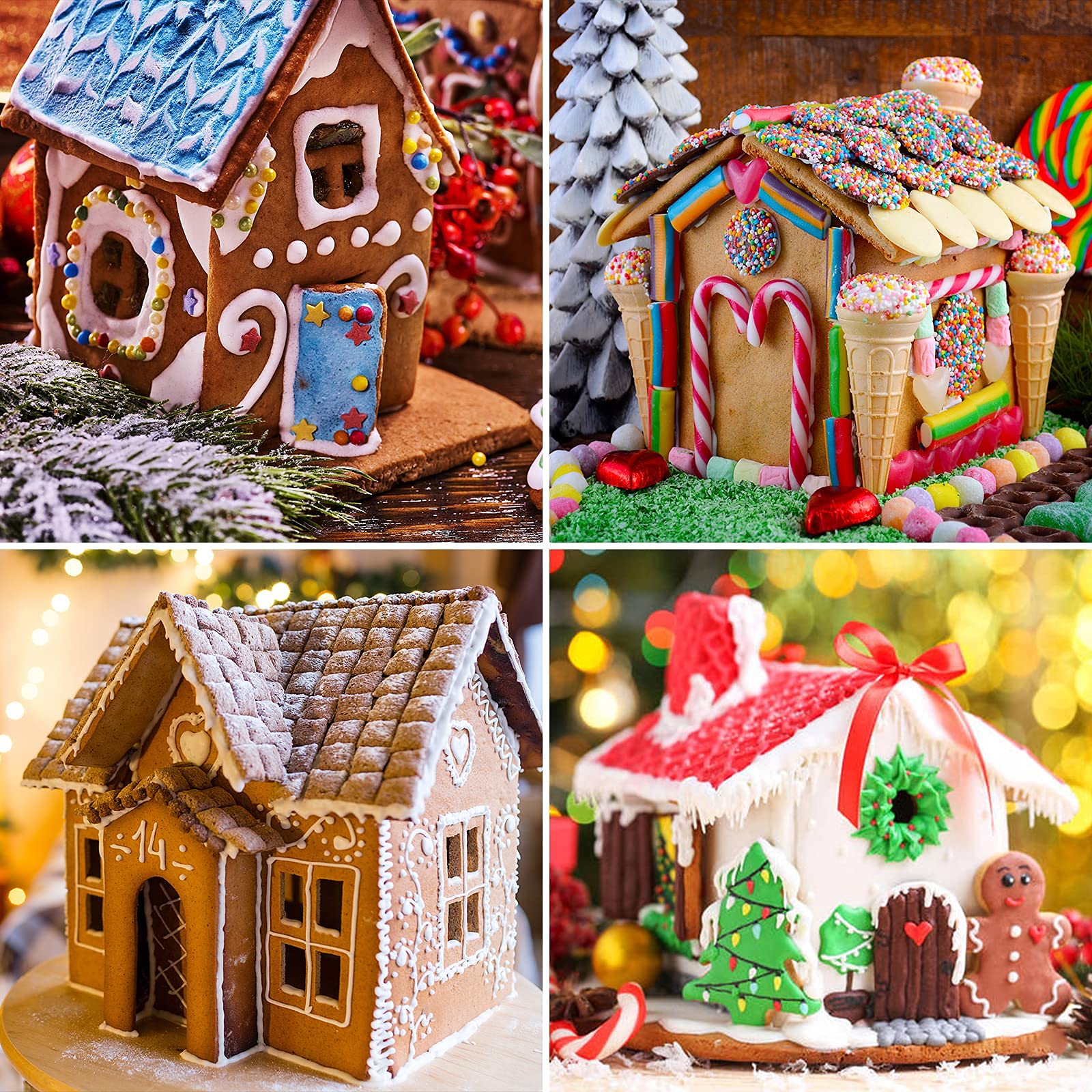Gingerbread Cutters: Come with 18 cookie cutter molds of different shapes, including Christmas tree, snowman, reindeer, sleds, etc.