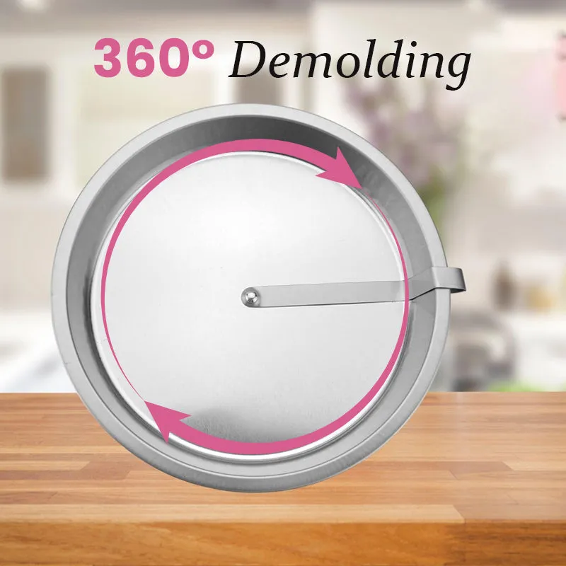 QUICK RELEASE MECHANISM - Say goodbye to broken cakes. The unique lever ensures your creations slide out effortlessly and intact, preserving their perfect shape and making them instantly ready for decorating and serving.