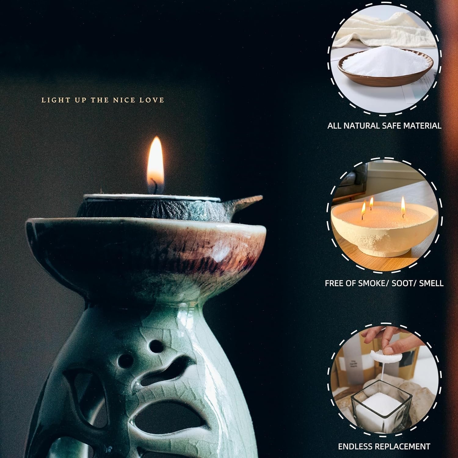 Long Lasting Burning Duration: Package including 8.8oz/ 250g wax powder totally, so The burning time would be upto 70h. With the excellent workmanship, the beaded wax sand is shaped into extremely fine and tiny balls, which will support the wicks evenly to help burn in balance. No worry about the wicks falling off and extinguished and not required to adjust the wicks constantly.
