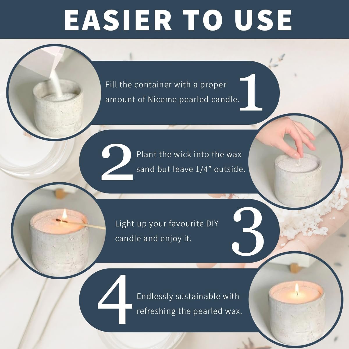 Scent-Free but Addible: The pearl candle kit is free of scent and chemicals, making it friendly to both the human body and the environment, especially for those with allergies. You can also add your favorite essential oil to give it a scent. Enjoy the warmth and ambiance the wax and wick candle brings to your home decor!