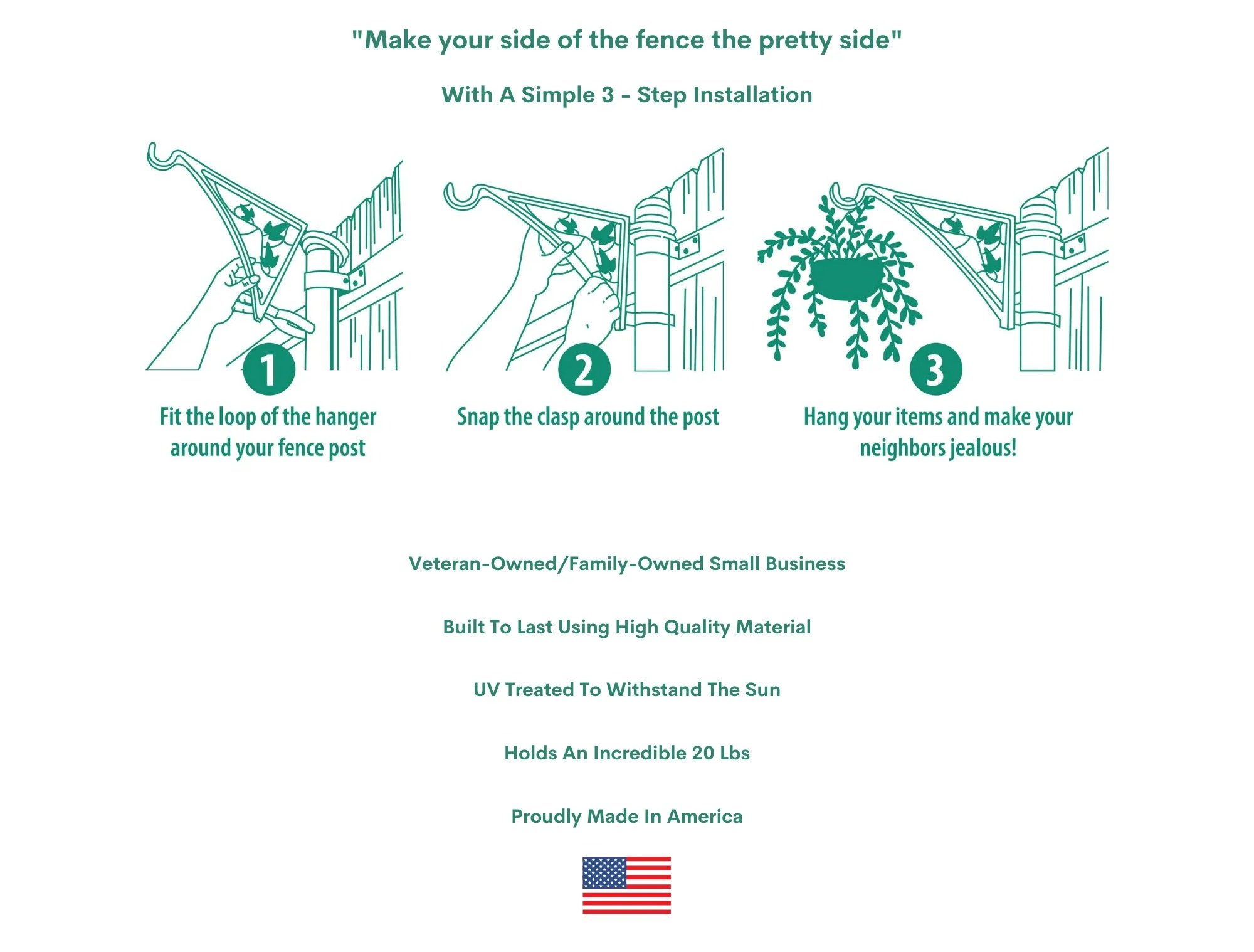 Transform your outdoor space with the Hangs EZ Fence Post Hanger, the perfect tool-free solution to elevate your backyard! Designed for convenience and durability, this fence post hanger allows you to hang your planters effortlessly without the need for any tools. It’s ideal for creating a garden oasis in just three simple steps.