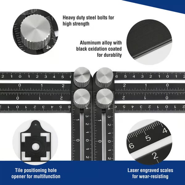 This newly upgraded tool goes beyond just measuring angles. It doubles as a tile positioning hole opener. Simply adjust the six metal knobs to replicate complex shapes or align tiles for drilling. Fast, efficient, and incredibly versatile.