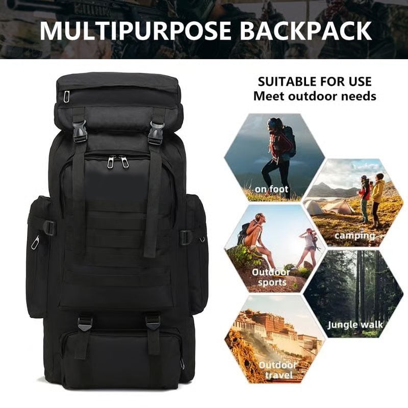 【Spacious】A generous 80L capacity offers ample spacefor essentials and equipment, making it perfect forcamping, hiking, and extended trips.