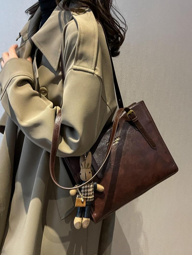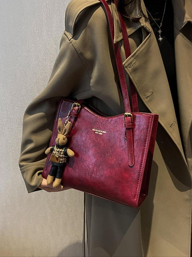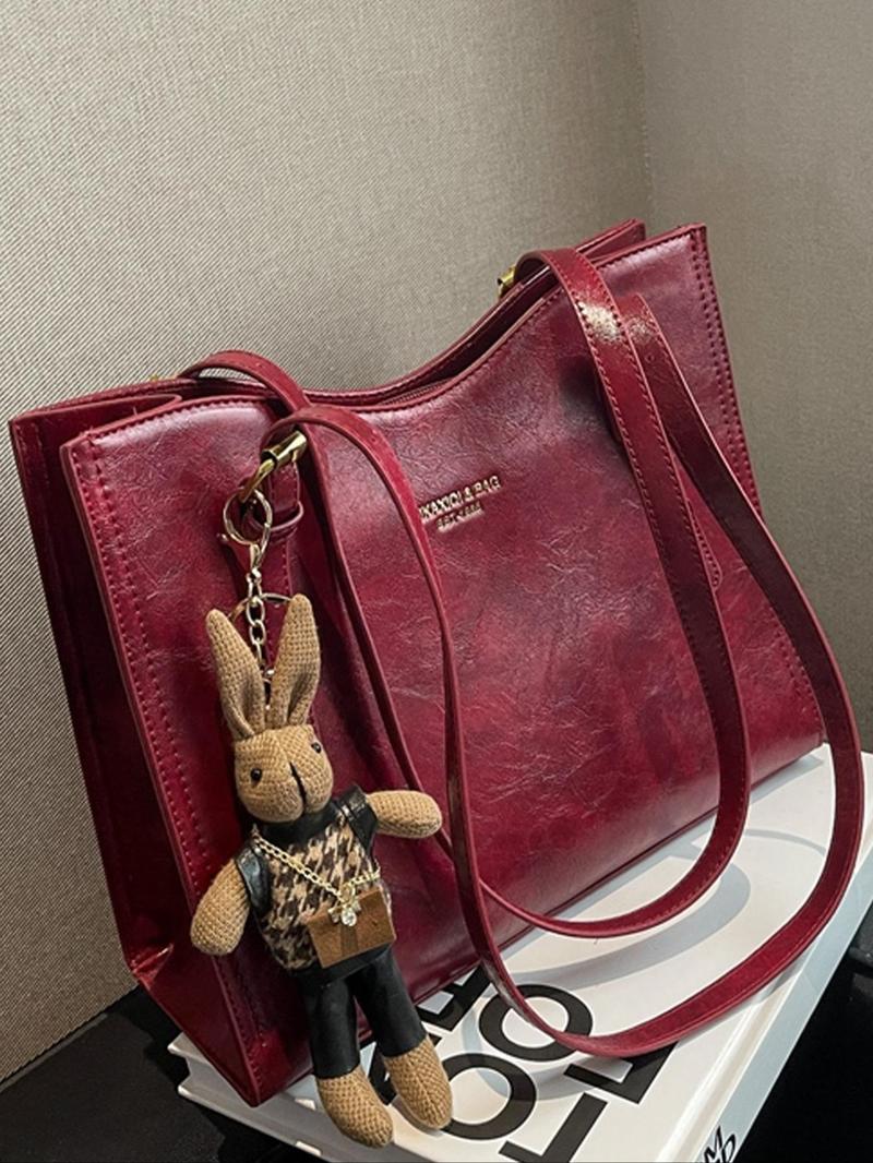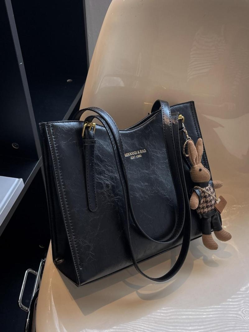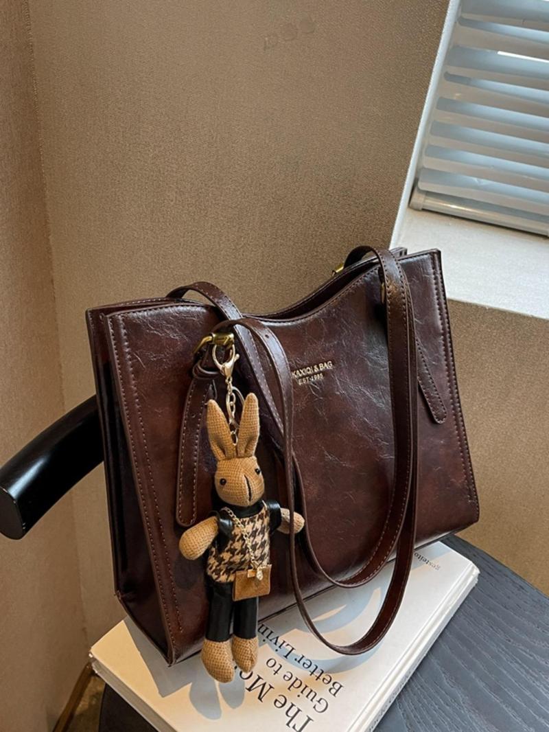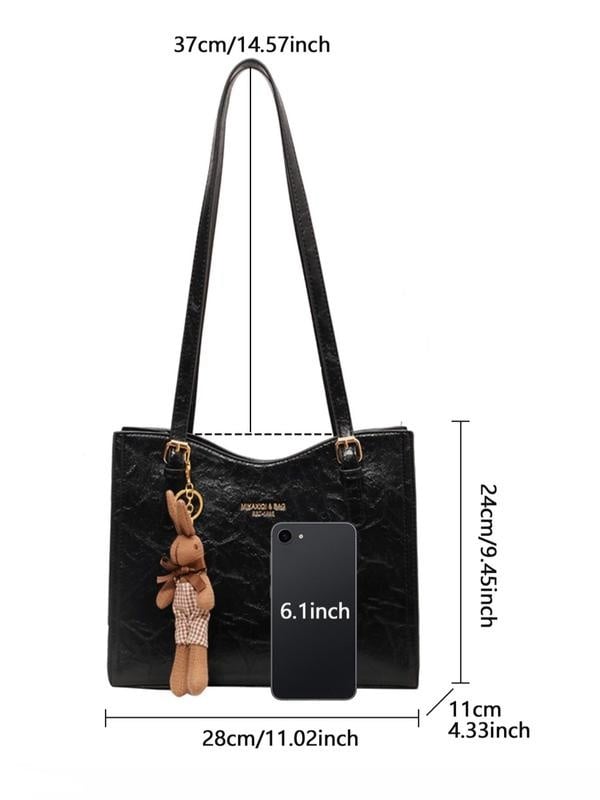 Charming Detail: Comes with a cute rabbit charm, adding a playful and personalized touch to the tote's fashionable solid color exterior.
